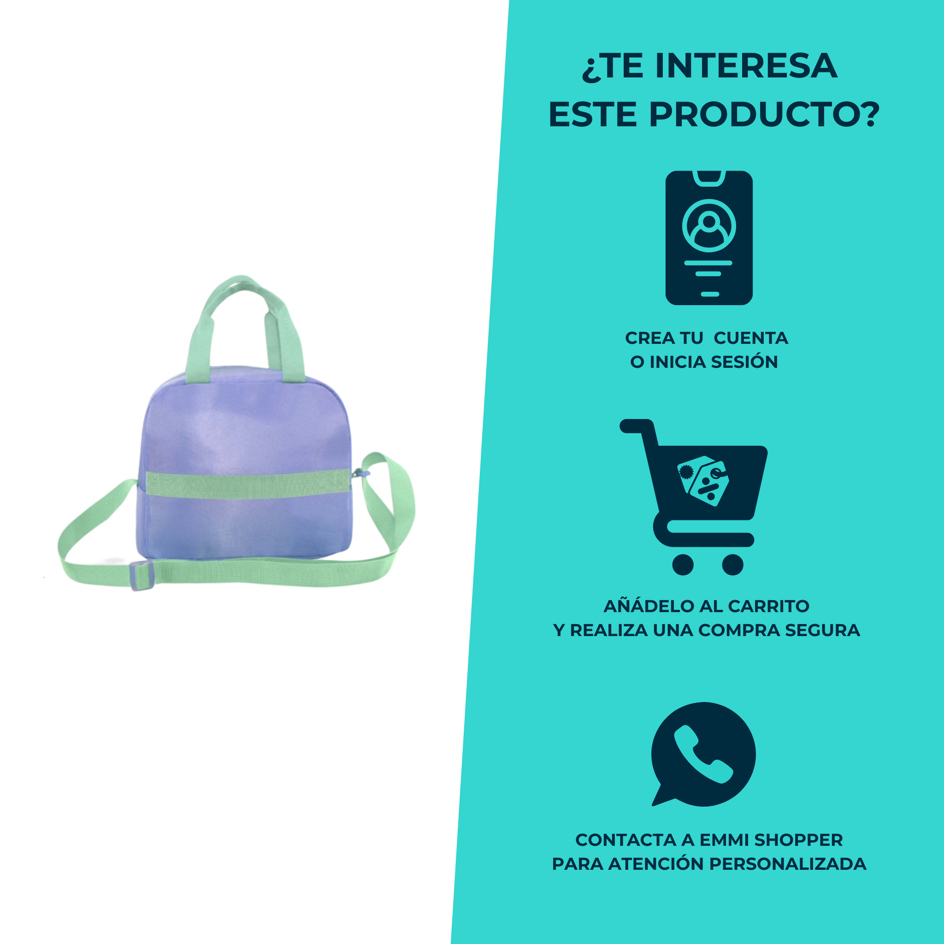 Lleva tus alimentos con estilo con esta lonchera térmica original Pink Label 00046, en elegante tono lila con asas verde menta. Compacta, ligera y funcional, es ideal para la escuela, la oficina o actividades extracurriculares.