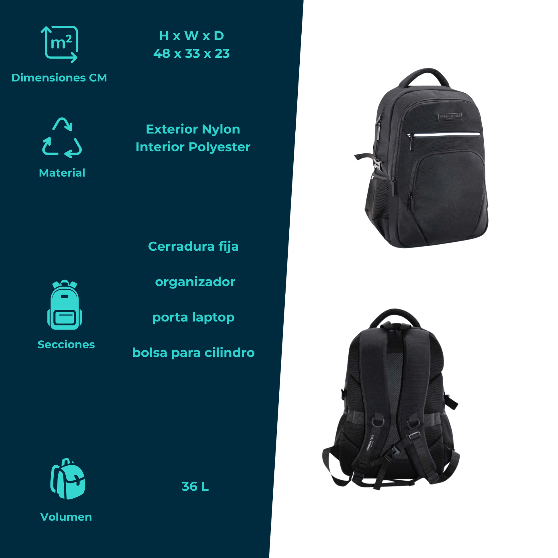 Mochila Kenneth Cole Negra de Gran Capacidad 36L