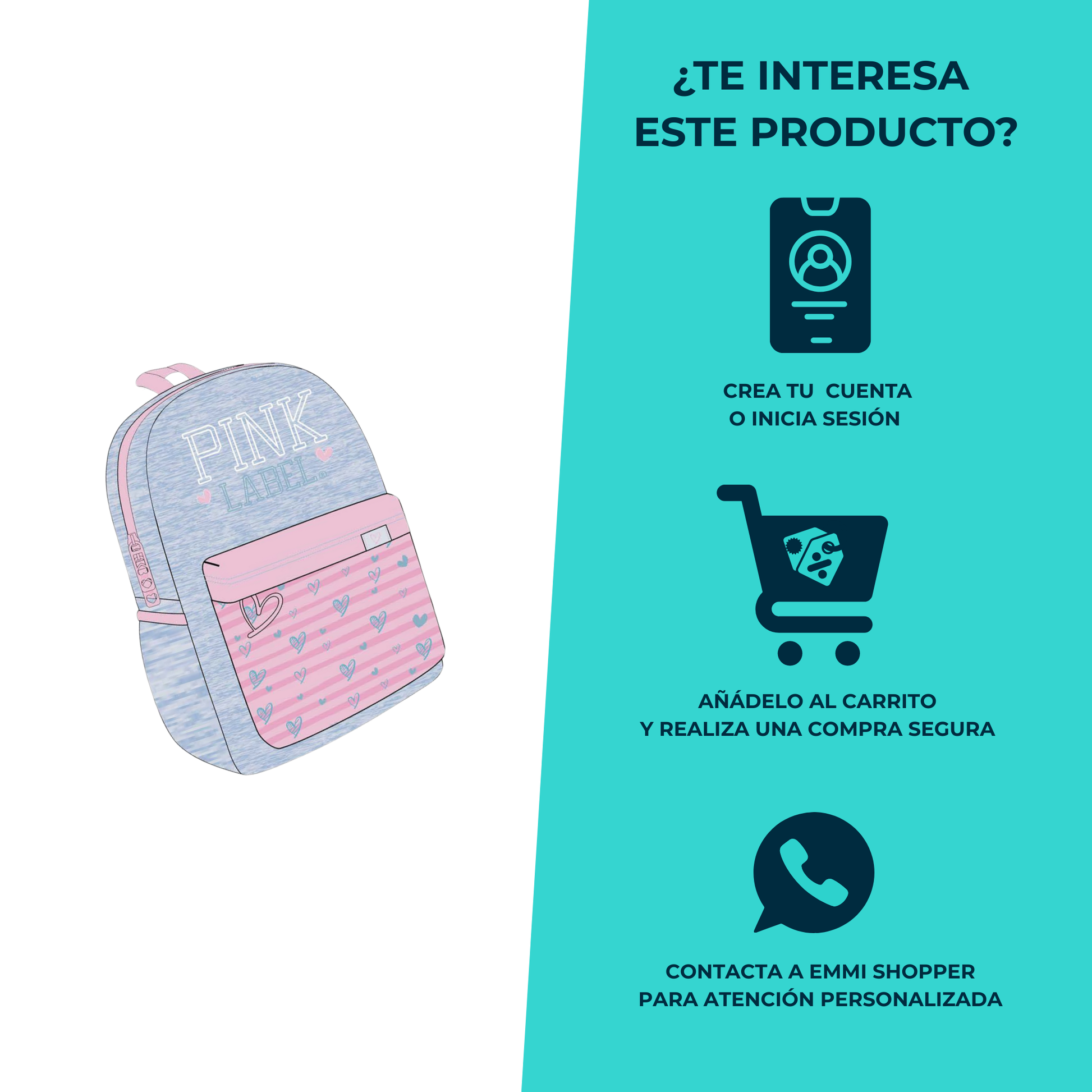 Haz que tu estilo hable por ti con esta mochila original Pink Label 00031, diseñada para estudiantes con actitud. Su diseño moderno en tono lila con bolsillo frontal rayado y detalles en gris la convierten en la compañera perfecta para la escuela, la universidad o tus actividades diarias.
